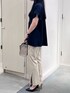 デザインブラウス×パンツのシンプルなコーデです☺︎ ブラウスが着映えするデザインで着るだけで決まります✨ かなり涼しい着心地です🧊