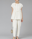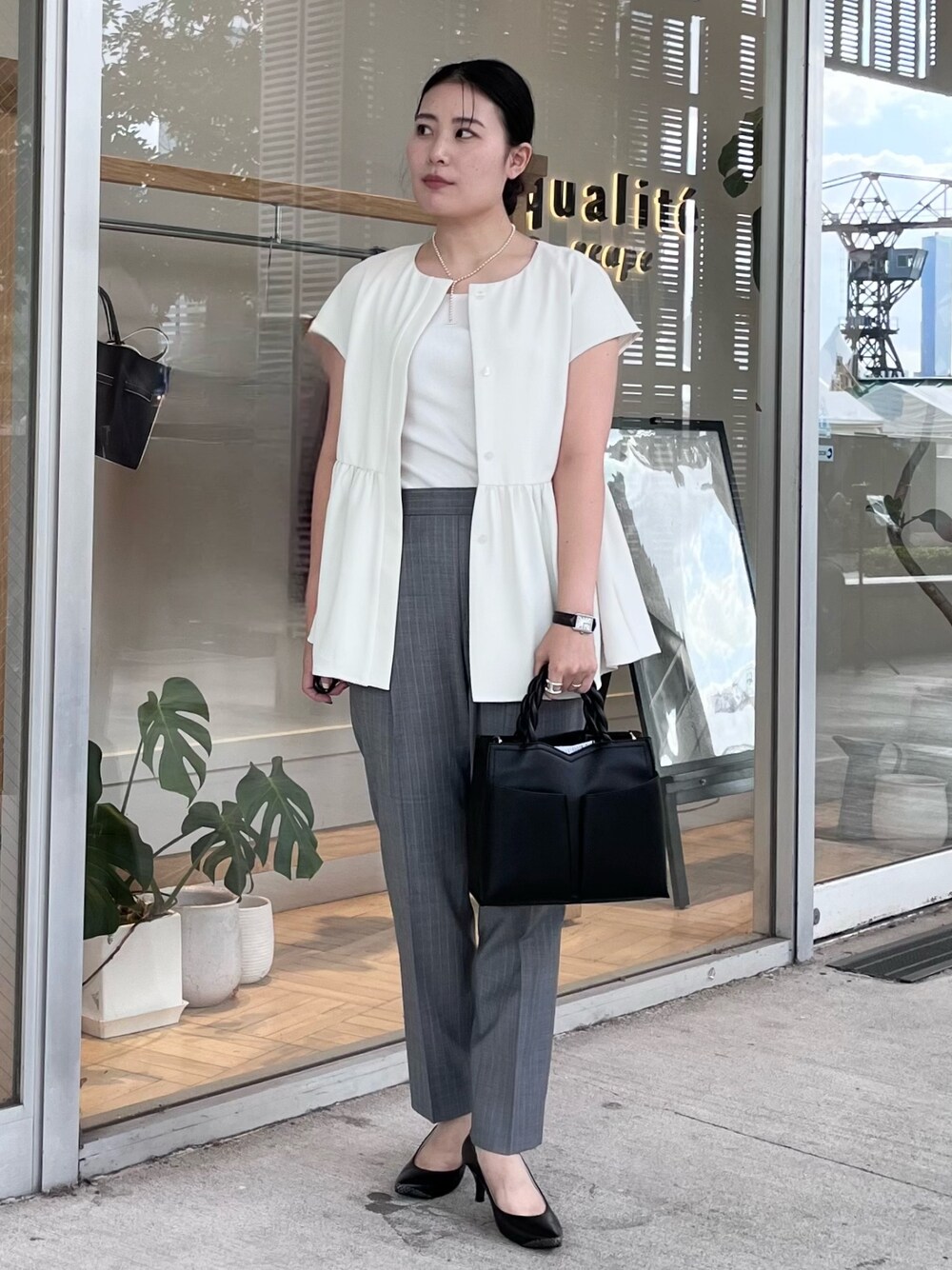 SAYA(カリテ スケープ ららぽーと豊洲店)のシャツ/ブラウス「【2点セット】ペプラムジレセットアップ/オフィスカジュアル/セレモニー/オケージョン/カセット服」を使ったコーディネート