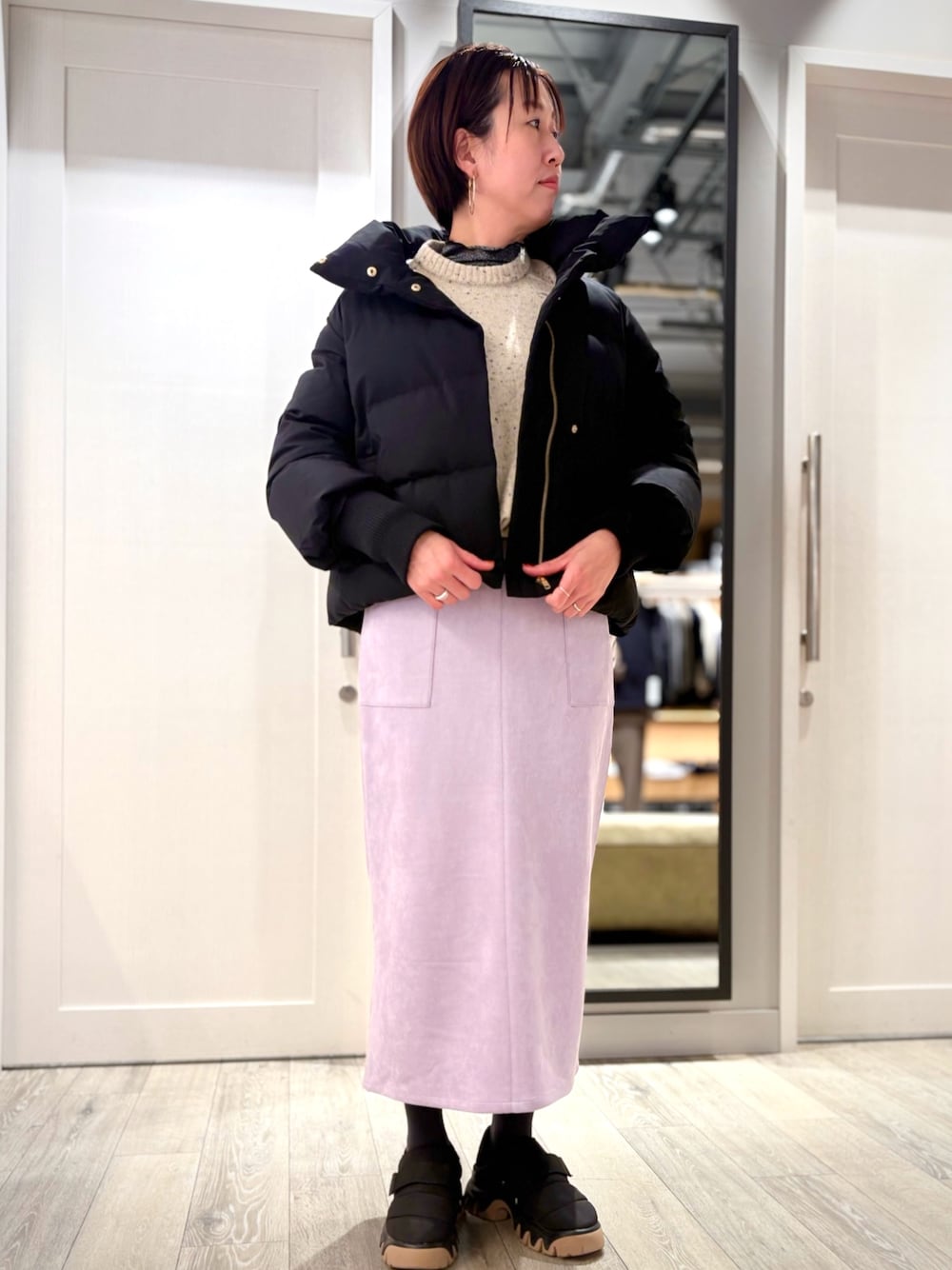 yoshi(アバハウス 佐野プレミアムアウトレット店(LADIE'S))のダウンジャケット/コート「【WEB Domani掲載】袖リブシームレススタンドダウン/ロングセラー/定番/軽量/冬服/長袖/きれいめ」を使ったコーディネート