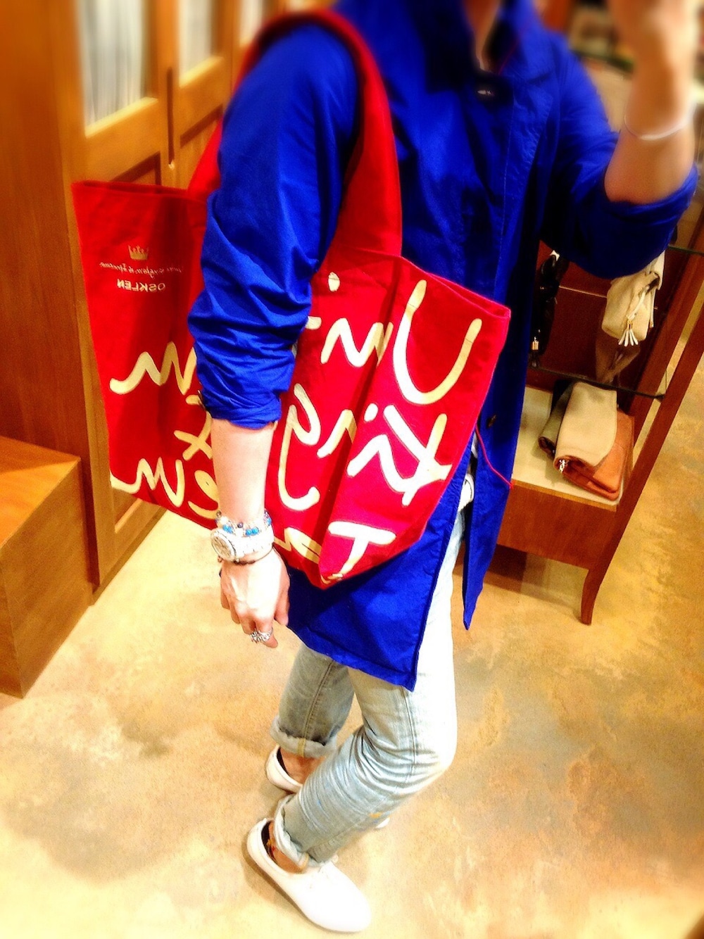 みなさん、こんばんは(^^) あなたの… 『すずきんぐ』です( • ̀ω ⁃᷄)✧キリッ えー… こないだの青のコートをまたまた使ってみました(*´艸`) てか、同じのでごめんなさい😂💦笑 そして、約束した白パンではなく… デニムでごめんなさい😂💦笑 でも、このバッグを使いたかったので、白パンは嫌だったのです💦 えっ? なんでかって⁇ それはですね… ちょっとでもこすったら、白パンが赤くなるからだよ(⁎⁍̴̆Ɛ⁍̴̆⁎)💨まいったw って事で、今日の出勤コーデは… 青✖︎白… ✖︎赤でした٩(๑❛ᴗ❛๑)۶とりころーるw