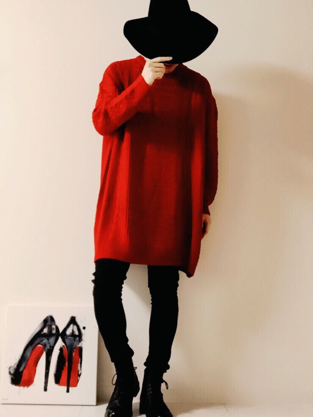 みなさん、こんばんは(^^) あなたの… 『すずきんぐ』です( • ̀ω ⁃᷄)✧キリッ えー… 今日は久々のお休みだったので、買い物してたやつを色々と宅配で受け取りました٩(๑❛ᴗ❛๑)۶✨ って事で、久々に自宅でWEAR撮り🎵 先日ゲットしたOliver Galの絵とともに✨ 服の話を… このニットは一目惚れして買ったやつで、めちゃくちゃダボっとしてて可愛いんです(*´艸`)✨ しかも発色の良い「赤」✨ 僕みたいな、34歳のおじさんに片足突っ込んだような男が着ても可愛いんです(*´艸`)✨ えっ? きんぐは可愛くない? そんな言葉は受け付けておりません(゚ε゚*)つん とにかくまぁ… 上半身がめちゃくちゃ大きいシルエットなので、パンツは極力細いモノをチョイス‼︎ って事で、レギンスばりの黒スキニーをブーツイン٩(๑❛ᴗ❛๑)۶ このニット… 黒も買っちゃおうかな(⁎⁍̴̆Ɛ⁍̴̆⁎)ぼそ