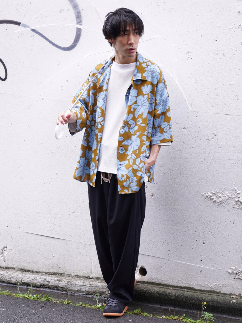 閲覧ありがとうございます。 ボタニカル柄のシャツをメインに使用したコーディネート ブラックのワイドパンツを合わせたゆるコーデ トップス以外はブラック系のカラーでまとめたのもポイントです◎ Instagramもやっているのでよかったらフォローお願いします。 nakamura_casperjohn