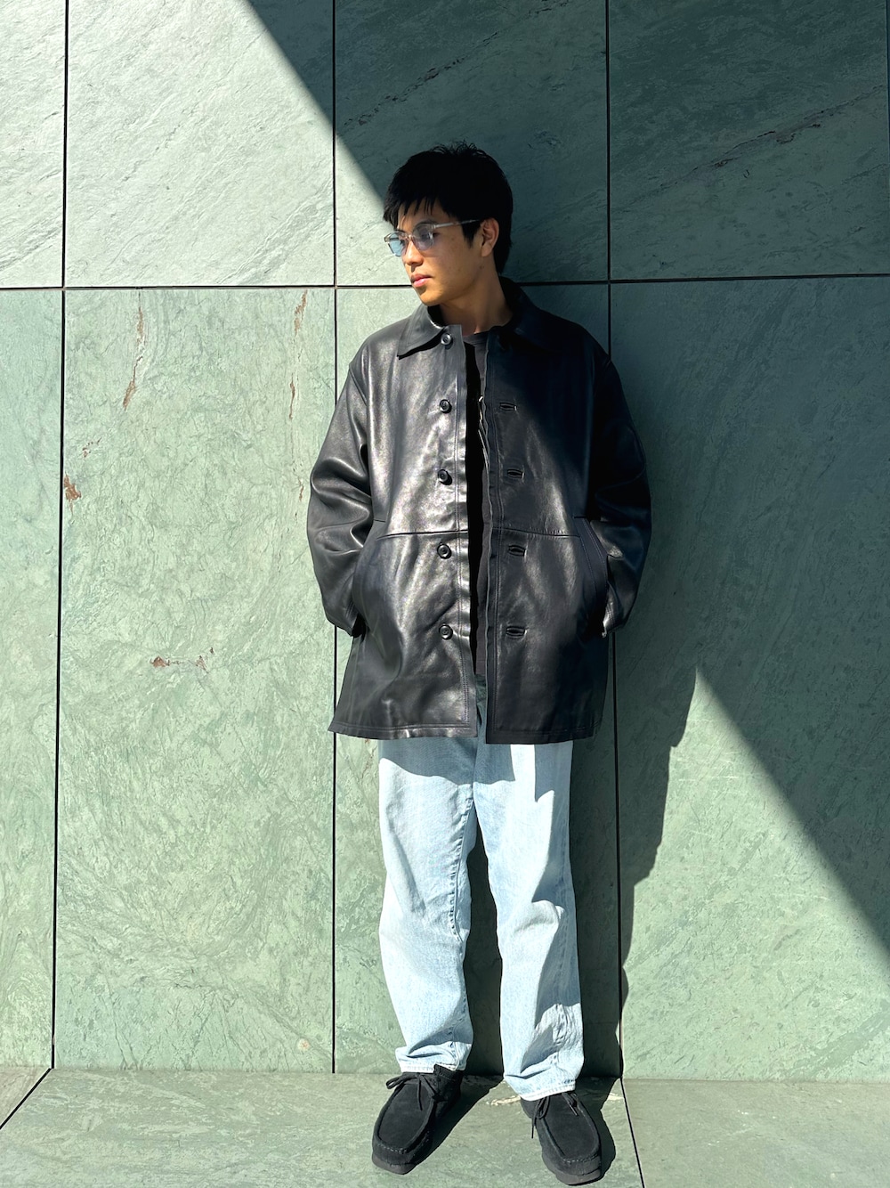 YOKEのカーコートの初卸し。 レザーとデニムの組み合わせがカッコいい。