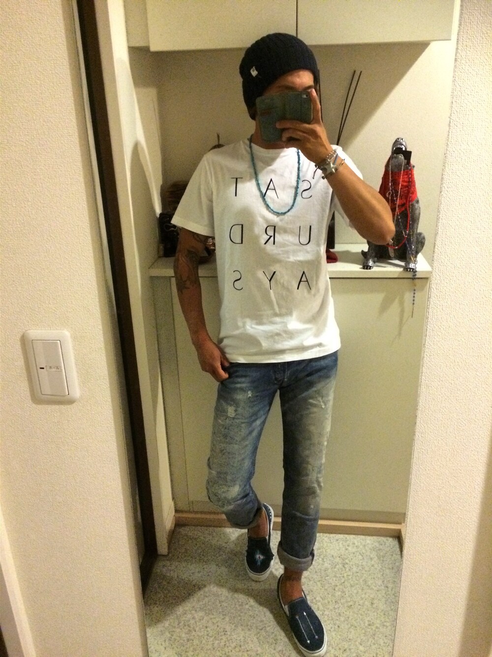 武田義也のTシャツ/カットソー「SATURDAYS SURF NYC / “Thin Stack” Tシャツ」を使ったコーディネート