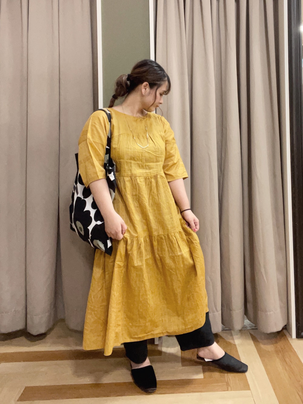 よしだのワンピース「クルーネックティアードワンピース *」を使ったコーディネート