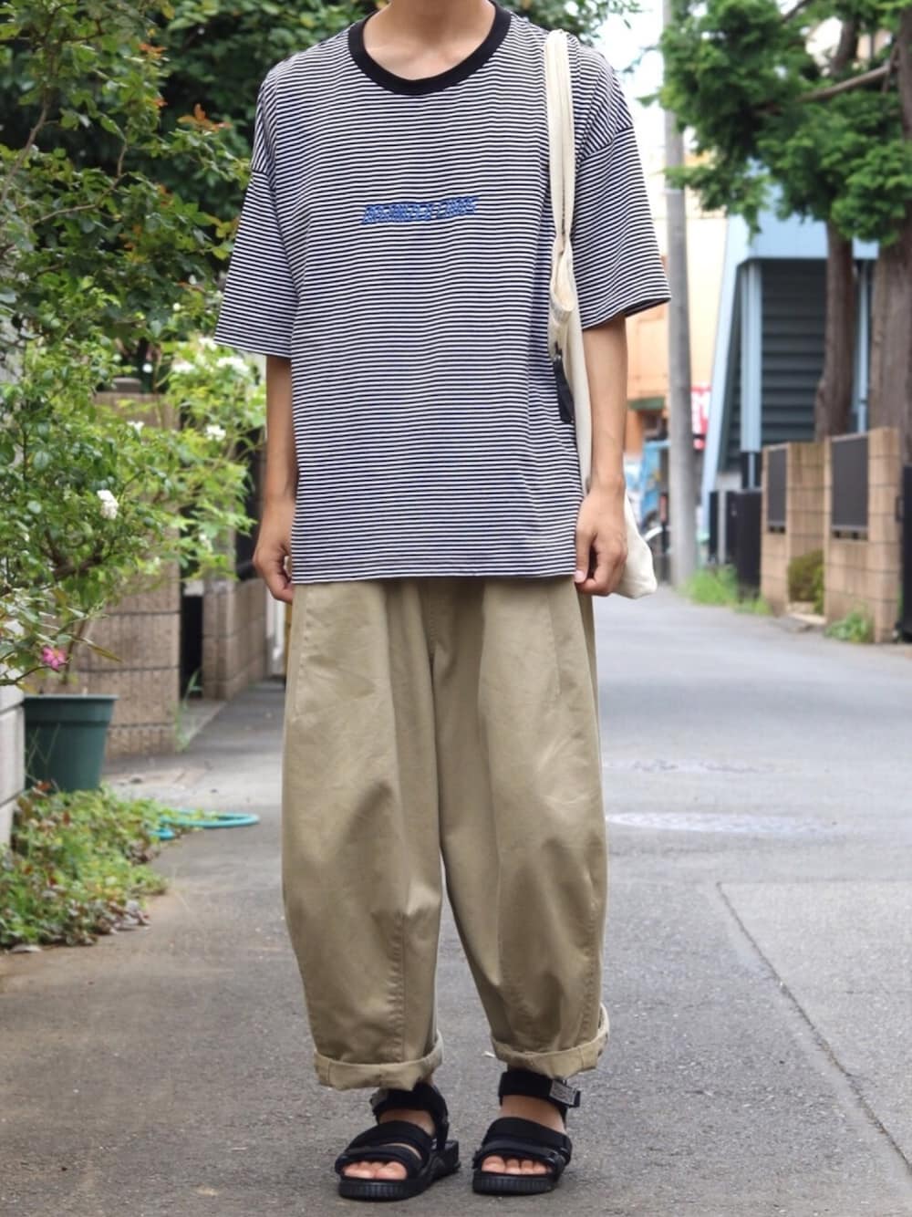 ヒザデルパンツ×ボーダー! トートバッグでコーデを軽く!