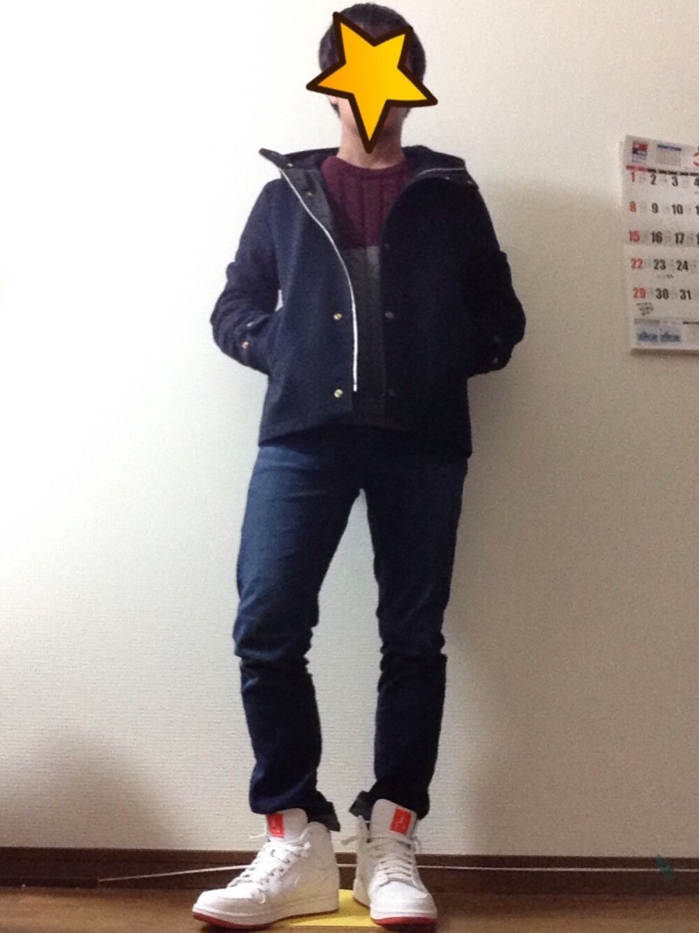 こんにちは! 今日から3月ですが名古屋の最高気温は9℃とまだ寒いです(._.) コーデの方ですが、久しぶりにエアジョーダン1の登場です^ ^ このジョーダン1はとてもお気に入りですが、汚れやすいため手入れもちゃんとしてるのでまだキレイに保ててる方だと思います(。-_-。) いつも足元は暗い感じのものばかりなので、たまには明るいスニーカーもいいですね!