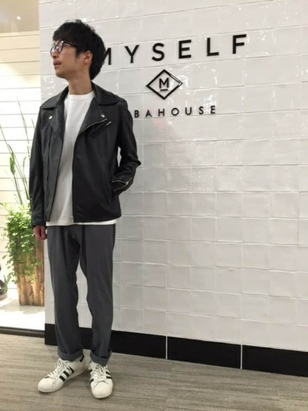 川上のライダースジャケット「レザーライダースブルゾン | マイセルフ」を使ったコーディネート