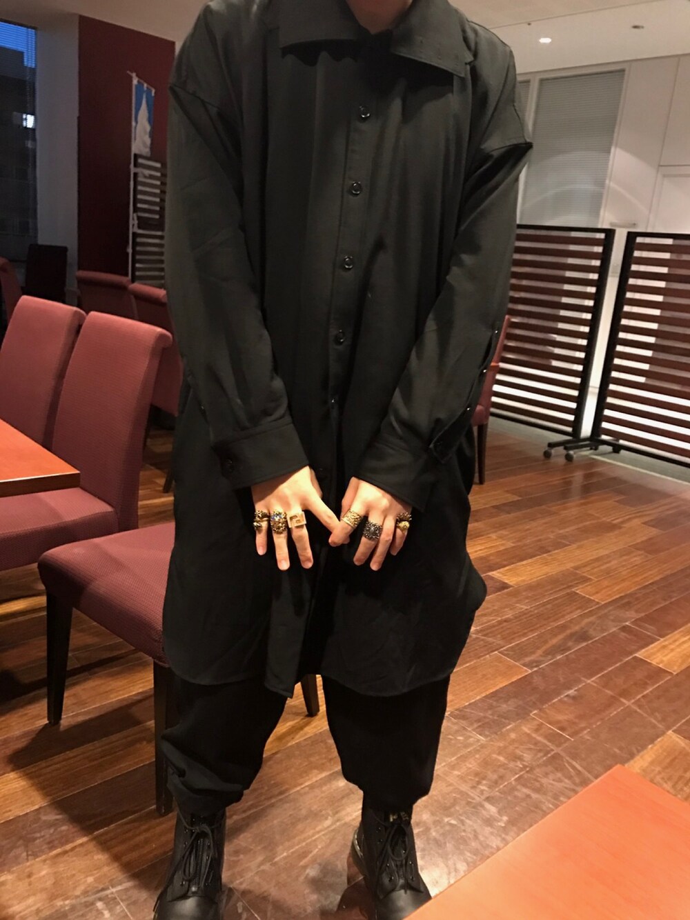 友達にGUCCIのリング。6つ借りました。大好きなyohji yamamotoの17AWコーデに17SSのDr.martensのコラボブーツを履きました。