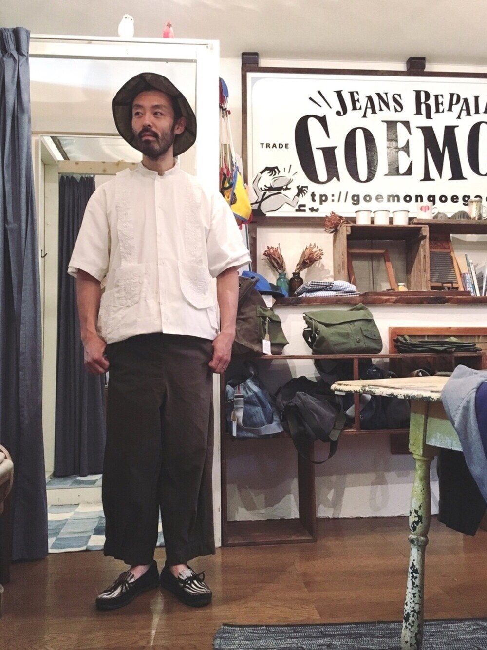 とりあえず… ポンっと置いた状態は良好 今回はキューバシャツを弄ります 存在証明みたいな要素を感じ取り そこを真逆の方向に持ち出し 極限まで削った後に 私達なりにその要素の一番を 今回はパズルの様に組み替えて戻しました まるでオーダーメイドの様に 着た状態でパーツを組み ピンで留めてバランスを見る作業を丸1日 途中で諦めようかと思いました。 それだけ完成されたディテールとバランス やはり伝統と格式のある物は それだけのイメージと完成度がある物なんだなと 思わざるを得ない難易度でした。 メンズ、レディース共に行けるアイテムに仕上がりそうです。