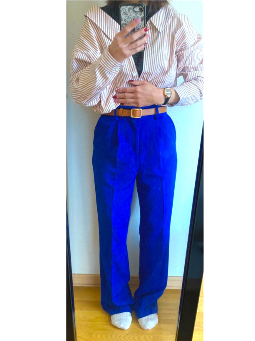 いつもいいねやお気に入り登録ありがとうございます! 人気のストライプシャツにブルーのパンツを合わせて春らしく仕上げてみました! どちらともサラッと着れることと、シャツはブラックのインナーとドッキングしているのでおしゃれに着こなせました!