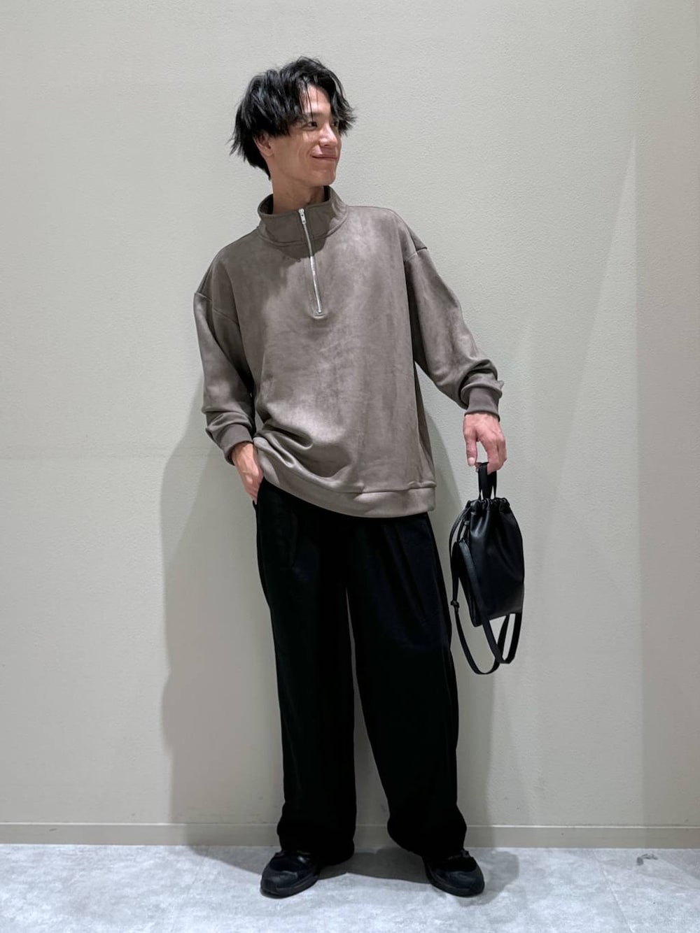 ▪️トップス ハーフジップが今年らしいアイテム。 サイズはややゆったりで身長175cmならMサイズで問題なく着れると思います! ▪️ボトムス 程よいボリューム感のワイドパンツ。 落ち感が綺麗で嫌な広がりがないのでワイドパンツに初挑戦される方にもオススメです!