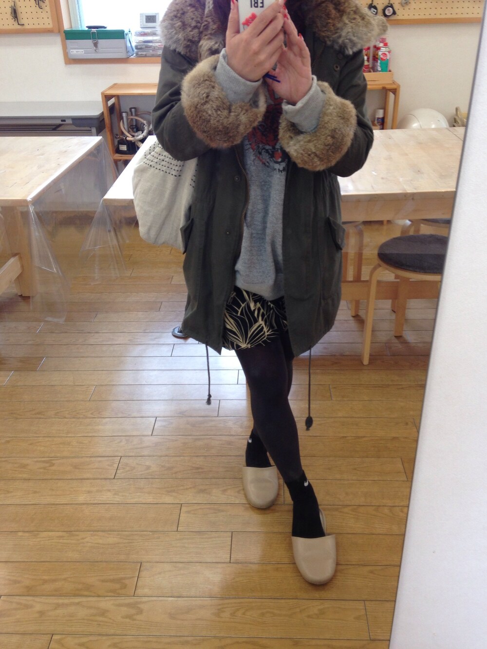 ミリタリージャケットの襟と袖口のファーは取り外し可能なので便利(ˇ⊖ˇ)