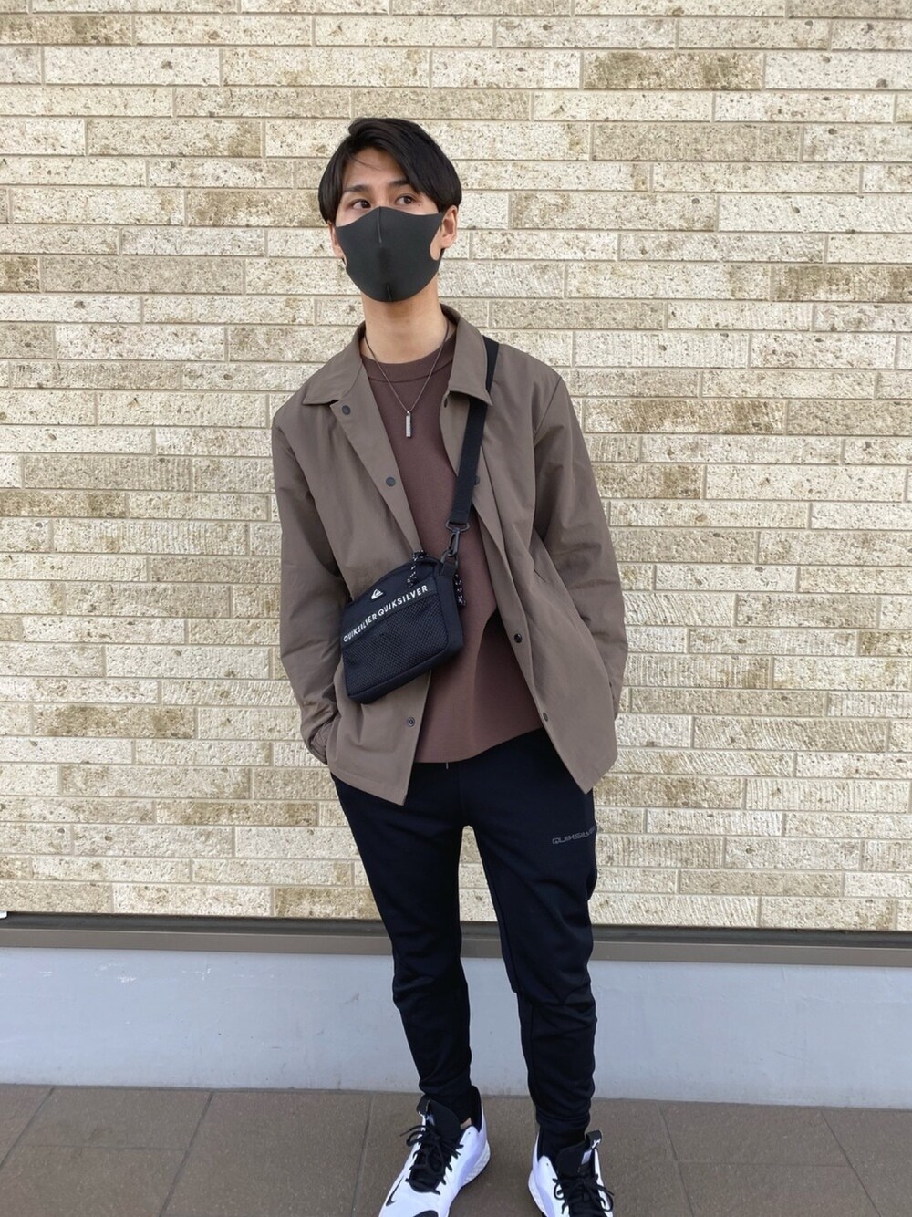 春コーデ GUのセットアップの上のみ着用。 茶系ですが秋っぽくならないように スニーカーは白にしました。