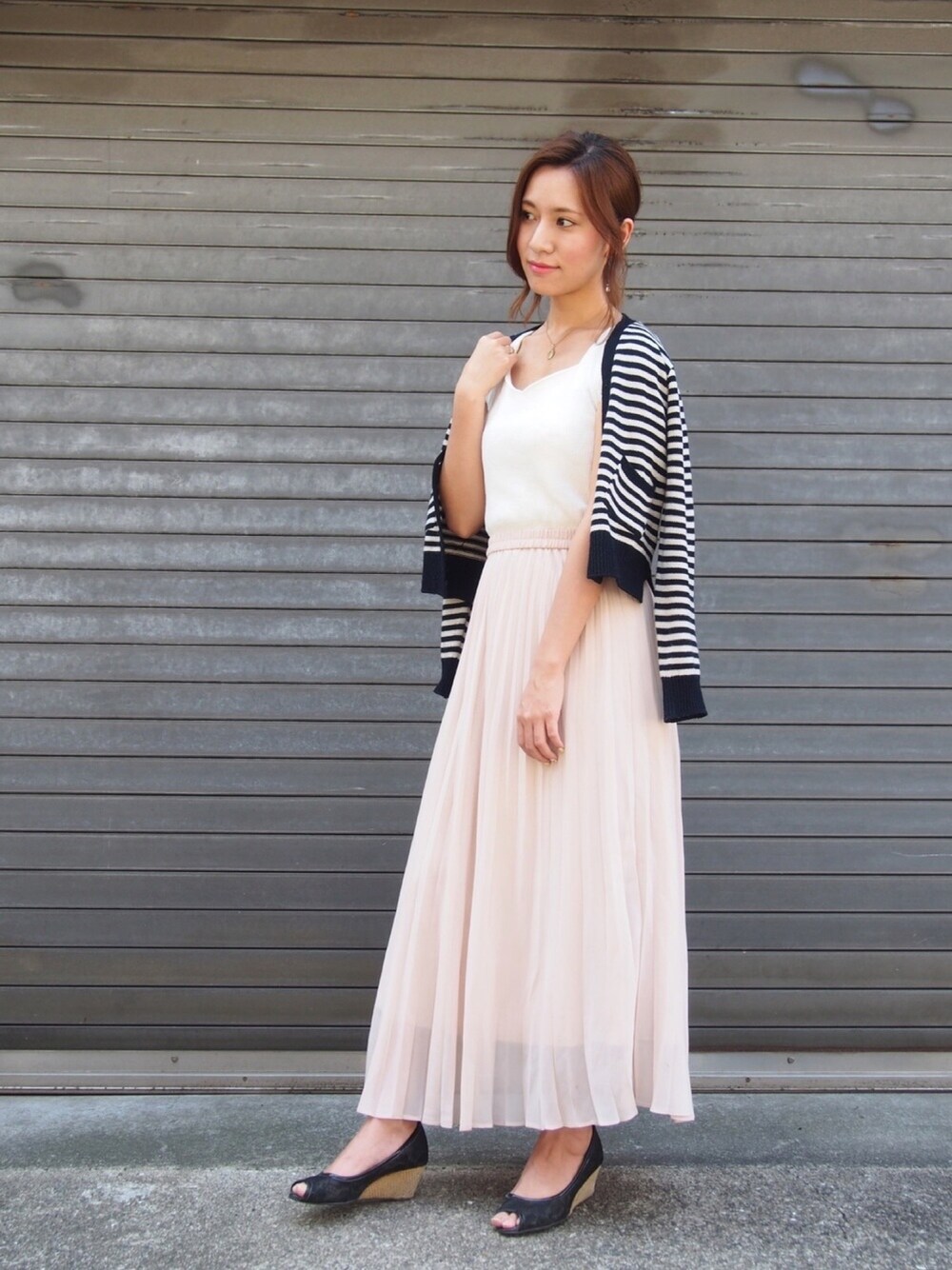 こんにちは😊 見てくださってありがとうございます♡ 今日はピンクベージュのプリーツスカートに白カットソーで女性らしく綺麗めに。 でもカーディガンとパンプスで黒を入れて自分らしくしました😊 あんまり淡いので固めると似合わないので😭 カットソーは同じシリーズ何枚も持ってるくらい、使いやすいんです💕リブが入ってるのが細見えしてお気に入り💓 今週も明日頑張ればお休み! 土曜は久しぶりにジム行って筋トレするから楽しみー💕✊️