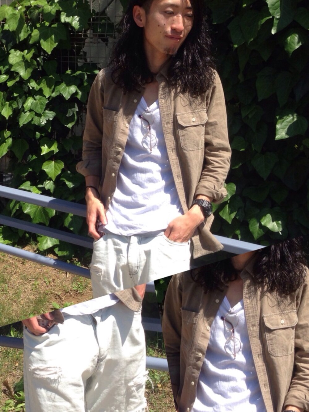 ピックアップタグアイテムひっぱってきました。 丸メガネ、ダメージデニムをあわせて。 最近は白T白パンが好き。 あとはネイビーは安定感◯ 今年は白と青の年ですね! ちなみに髪切ってこれです笑