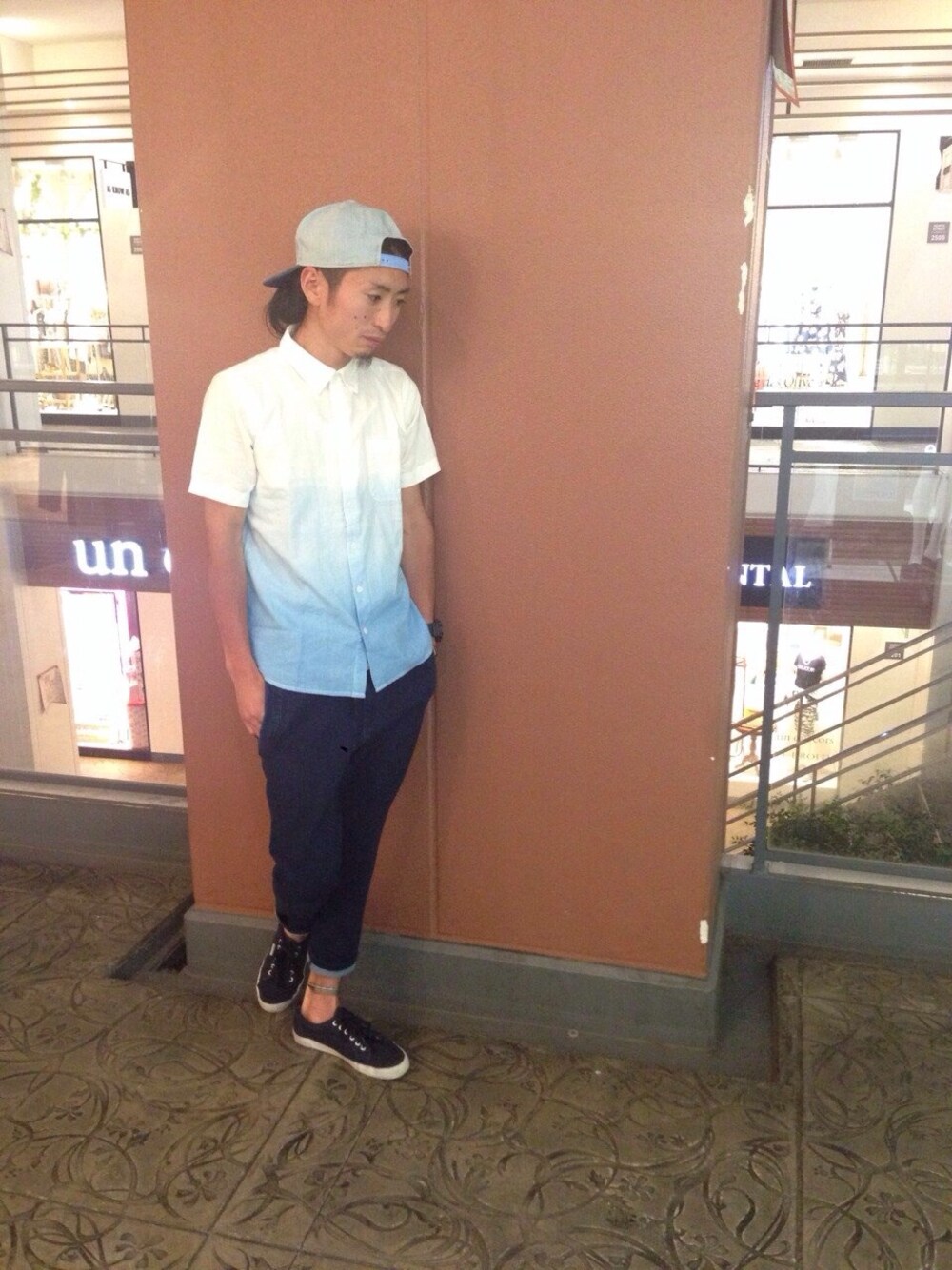 全身ブルー。 大好きブルー。 上グラデーションブルー。 下インディゴブルー。 キャップもブルー。 シューズもブルー。 梅雨で気持ちもブルー。
