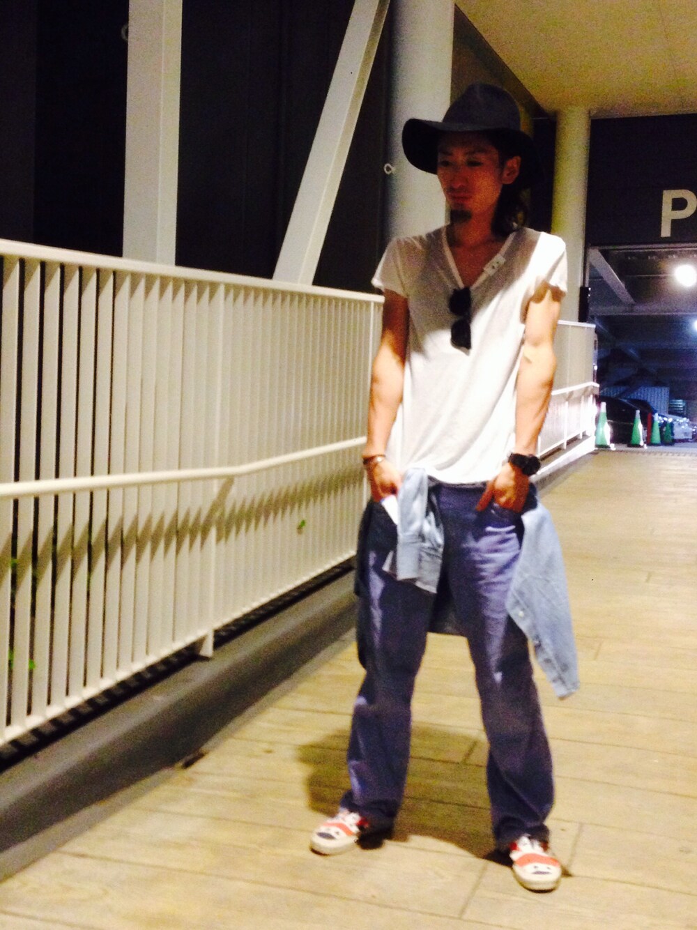 最近はこんな感じです! つば広ハットお気に入り! 暑い。