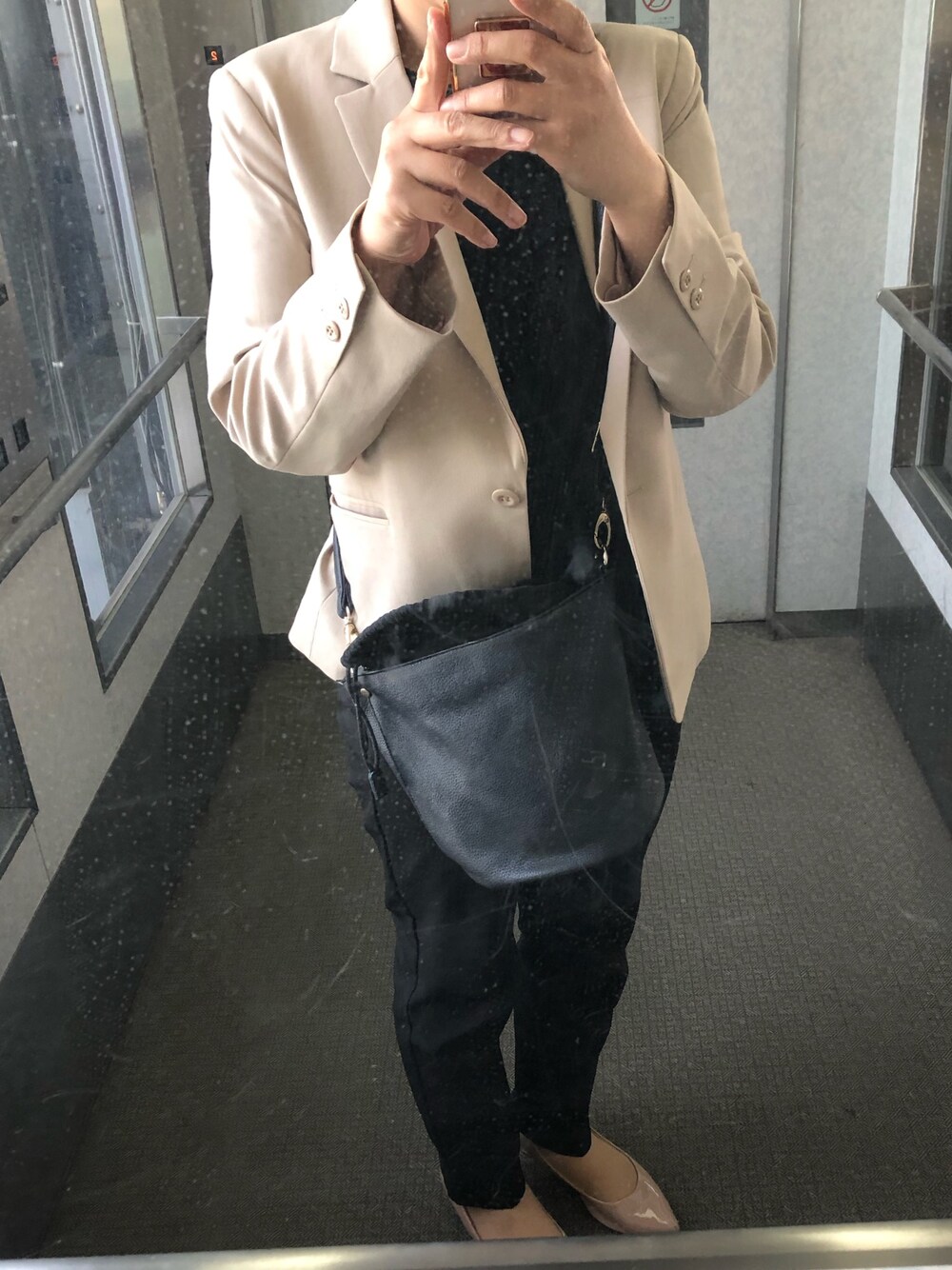 鏡が汚くてすみません。 クロ×ベージュ