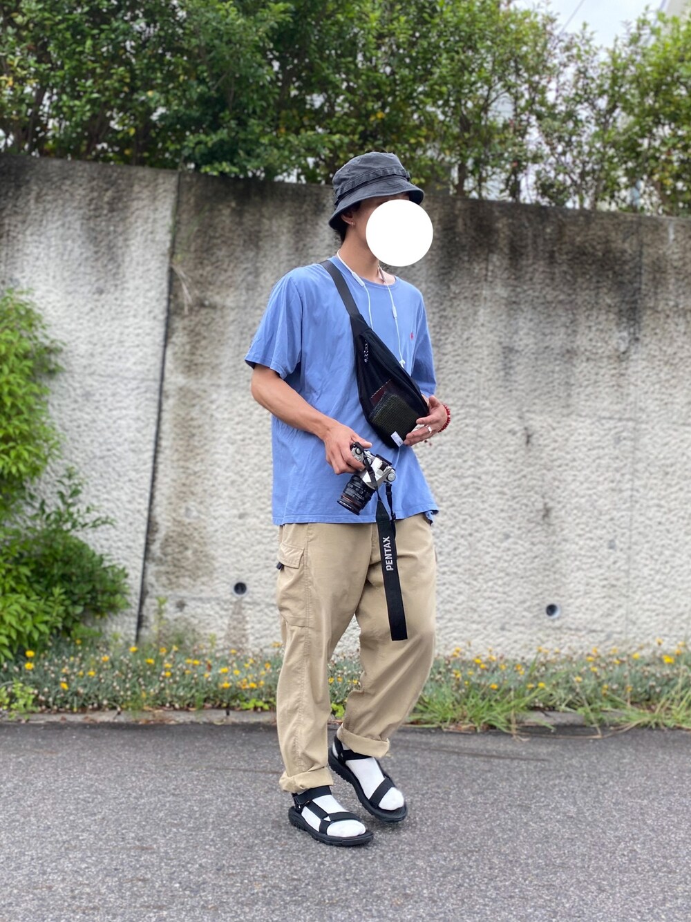 ちょっと青っぽく写ってますけど、 これラベンダー色です。 ベージュとの相性が良いって店員さんが言ってたんで合わせてみました。 個人的にモノトーンとカーキ以外は何着てもしっくり来ないんですけどね。