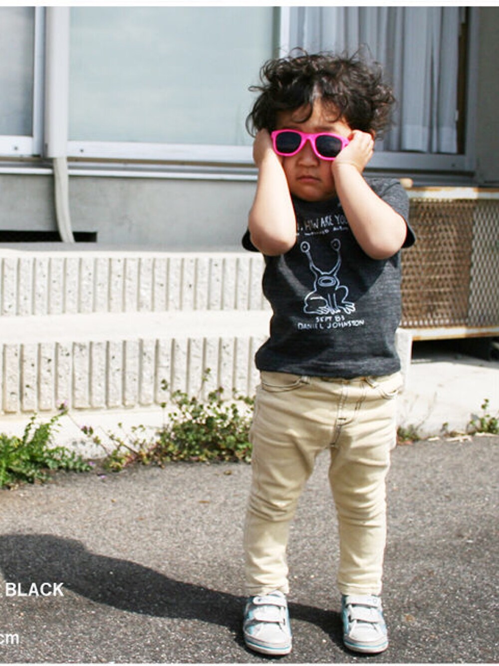 甥っ子。 メガネもそうだけど立ち方も絶妙な角度。 これで、10数秒静止してました。 何か見えたんかな笑 子どもっておもろいですね☺︎ 新作キッズバンドTシャツです。