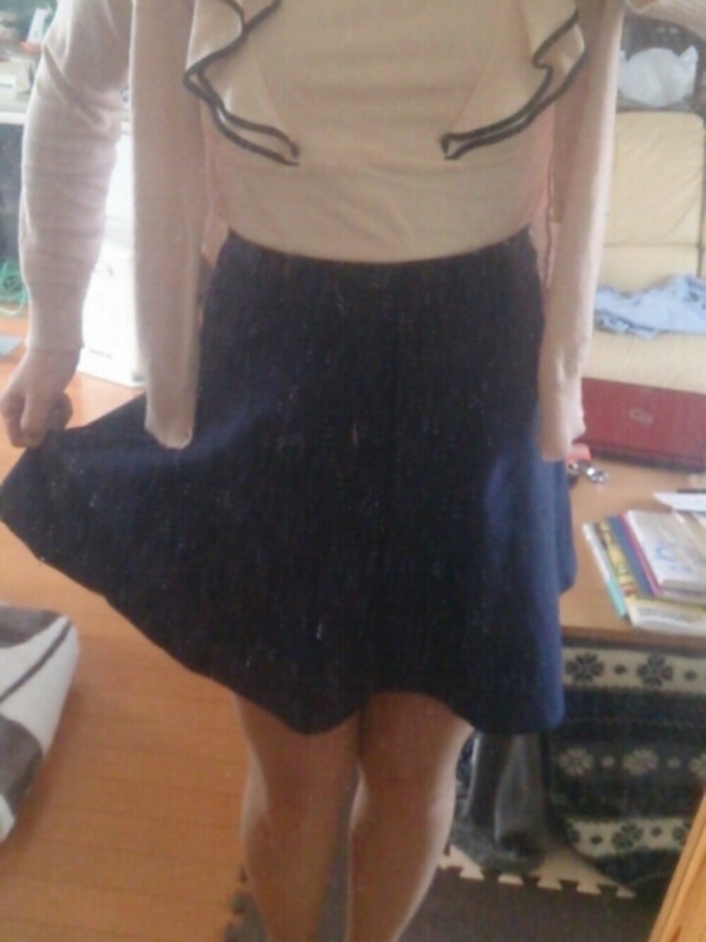 今日のコーデです。 ピンクのフリフリトップスはお気に入りです。 ボーダーのフレアスカートをあわせてみました。