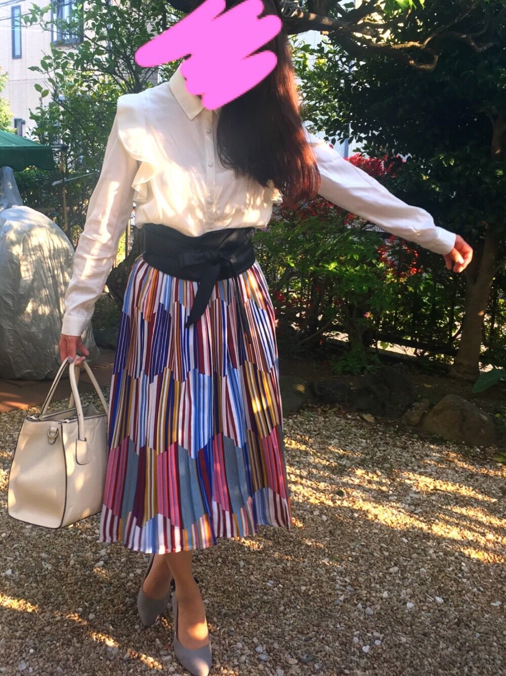 おにゅーのスカート♡ カラフルなのは自分的な珍しい。。 大丈夫ですかね、、?笑 あのー、私、 左手あがっちゃうらしいです。笑