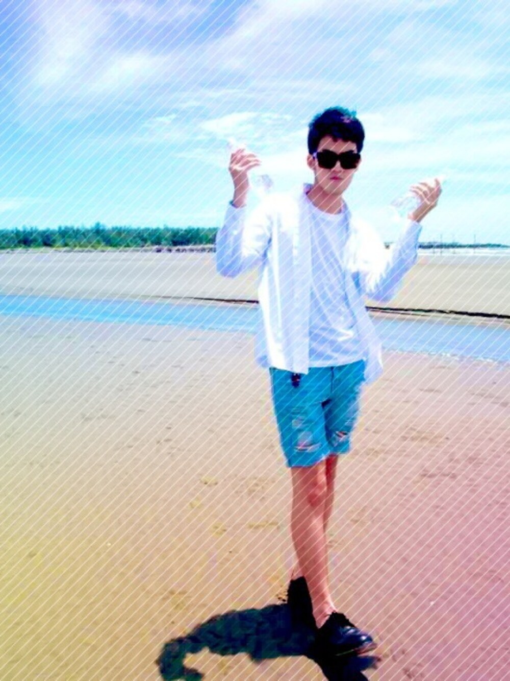 抓住夏天尾巴 形象:清爽男 白襯衫配白T較不單調 (適時反摺袖子可以增加搭配感、皆路邊攤) 顏色好看的牛仔破壞褲反摺 (購于逢甲 Hao Hsuan Huang) 馬汀短靴 配上空氣感短髮👍👍優 照片編輯:vintique