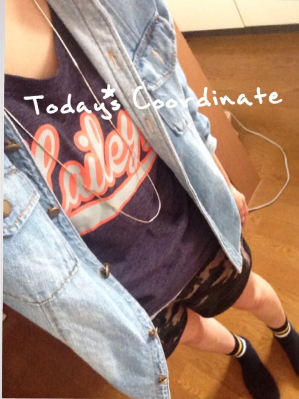 デニムシャツ : free's shop Tシャツ : GU ショートパンツ : 楽天 靴下 : tutuanna ザ・カジュアル♡ 靴は黒のコンバースで(^ ^) バッグはリュックで!