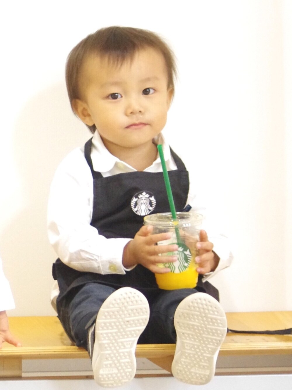 スタバキッズ! 数少ないブラックエプロンのバリスタさんになりました☆ ドレスコードもばっちりです!