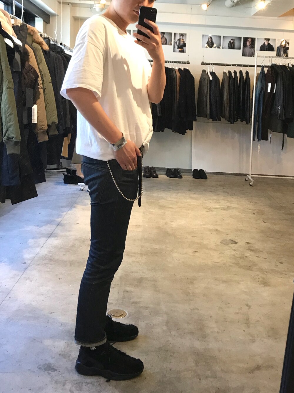 you_skのデニムパンツ「NO.35 SLIM WASHED INDIGO DENIM:NO.35スリムウォッシュド インディゴデニム」を使ったコーディネート