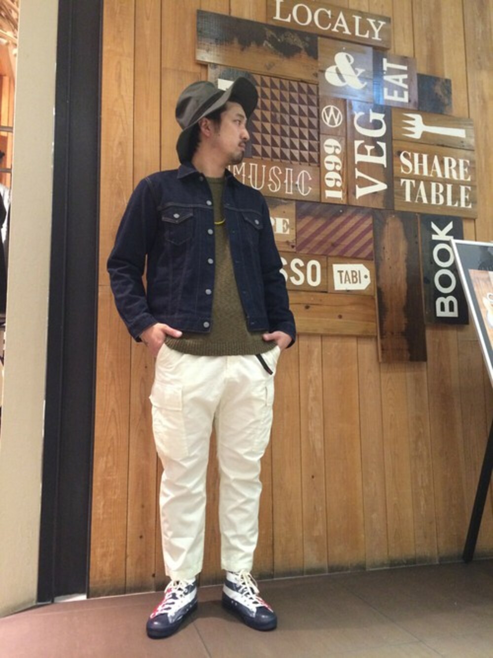 欲しかったGジャンでのコーディネート。 白が合います。 ニットも合います。 足元の星条旗柄にも合います。