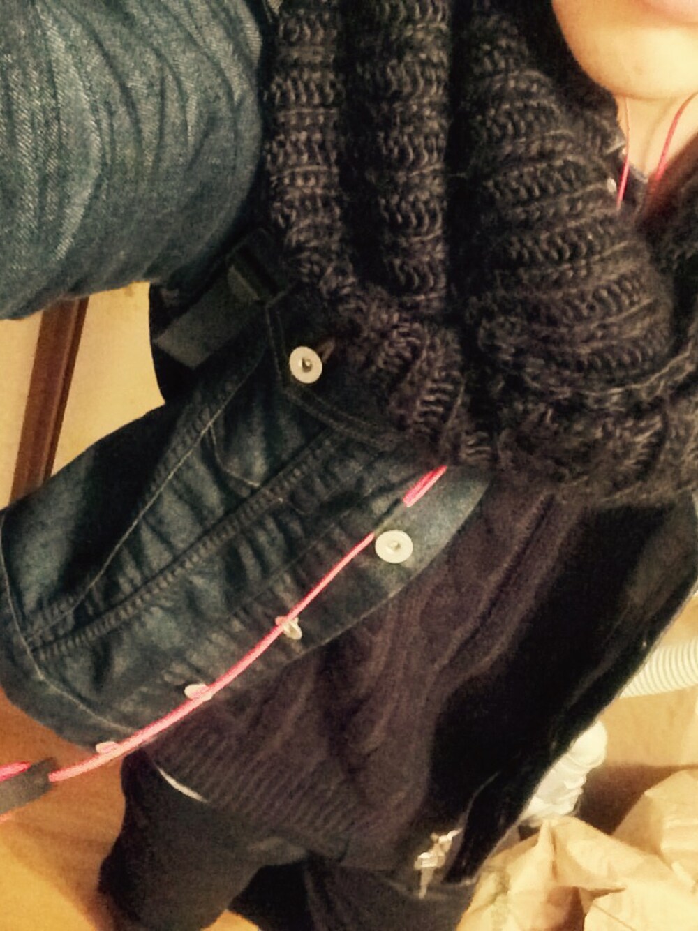 最近寒いですね😅 バイクを乗っているとマフラーやスヌードがなかったらもぉ凍りそうです ちょっと黒すぎたなぁと思ったんですけどニット×ジャケット×スヌードが自分的に好きなコーデです