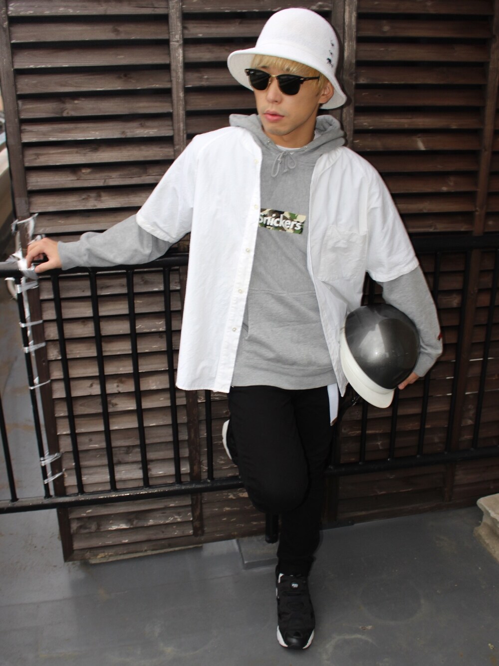 パーカーの上にベースボールシャツを合わせてみました🚶💨 ベースボールシャツは1番上に持ってくる場合はキャップをかぶると野球少年になってしまうので、ハットで野球感を取り除きました! スキニーにポンプフューリーの組み合わせはテッパンです!!