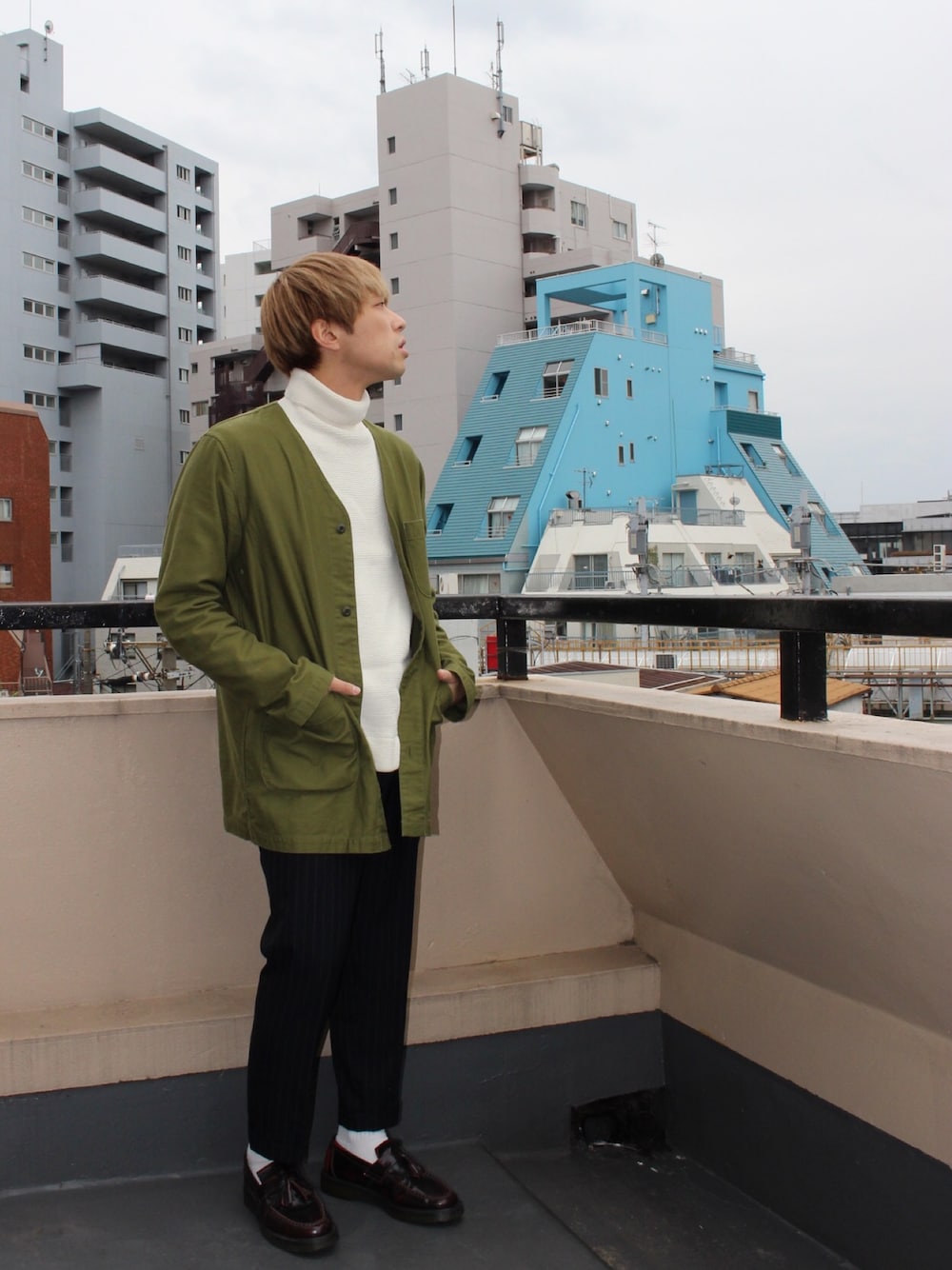 こんにちは! 本日は白のタートルネックにノーカラーのミリタリージャケットを合わせてスラックスでキレイめにしてみました🚶💨 ぼちぼちタートルネックの出番が増えそうで嬉しいです! シューズはドクターマーチンのローファーです!! いいねやフォロー是非とも😋✨