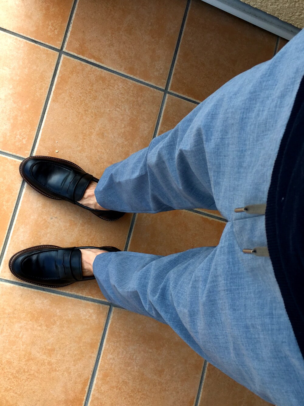 コンフォートパンツとニットポロ(写ってないけど)のスッキリコーデ