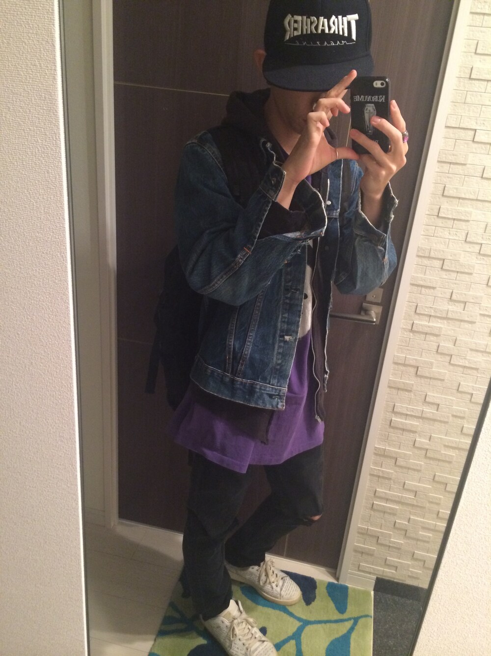 cap:THRASHER Tシャツ:古着 パーカー:古着 ジージャン:Levi's 古着 ジーパン:Levi's 古着 スニーカー:adidas スタンスミス バックパック:古着 指輪:Vivienne Westwood 昨日、出かけた時の服装。 今まで全く興味がなかったジージャンがとてつもなく欲しくなり古着屋で探した。タグ無いけどいい感じのが見つかってよかった♪ スタンスミスは自分で落書き!右はzilch『SPACE MONKEY PUNKS FROM JAPAN』左はhide『LEMONed I SCREAM』