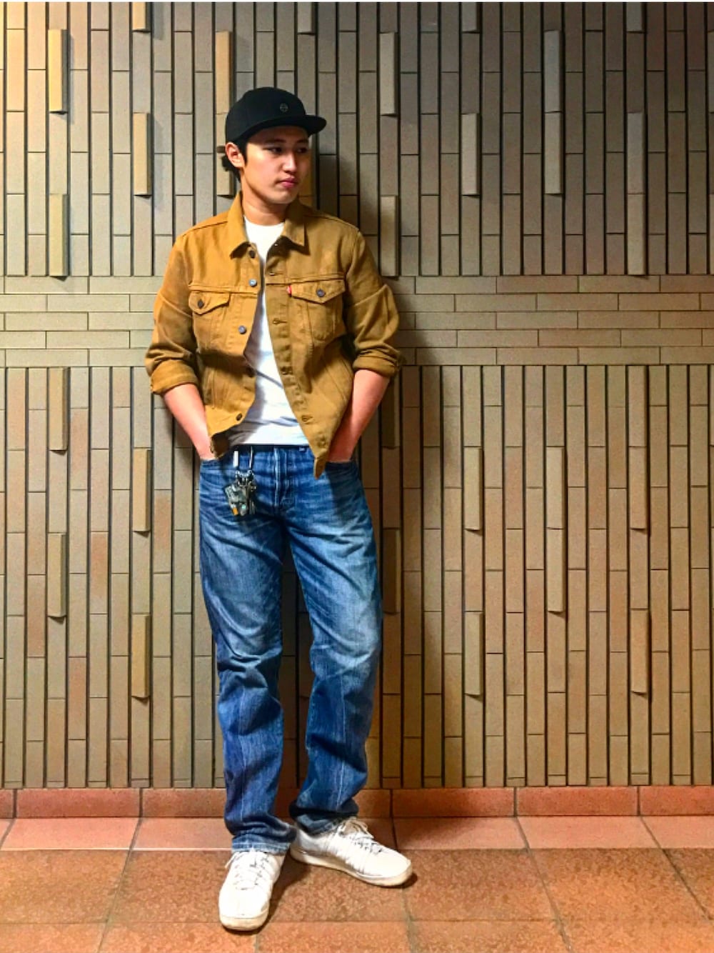 もう一枚コットン生地のトラッカーが届いたので投稿📸土臭くなりすぎないようにインナーとスニーカーは白で統一してみました‼️ それにしても今日も夜は冷え込んでますねぇ…