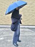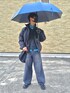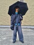今話題の色合わせのレイヤードスタイル🩵🖤 インナーのシャツの露出部が映えます。 傘とシャツの色を合わせてみました☔