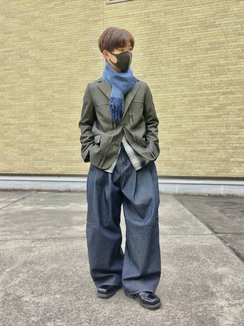 テーラードジャケットや革靴等できれいめに寄せ、インナーのチェックシャツを見せることでカジュアルに落としました☑️ リジットのバギーデニムがきれいめカジュアルに使いやすいです◎