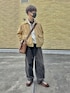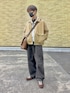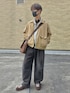 コーデに黒を使わずに、ブラウン系の色でレイヤードしてみました🕌 ハーフジップを開いてシャツとレイヤードするのが好きです🫰