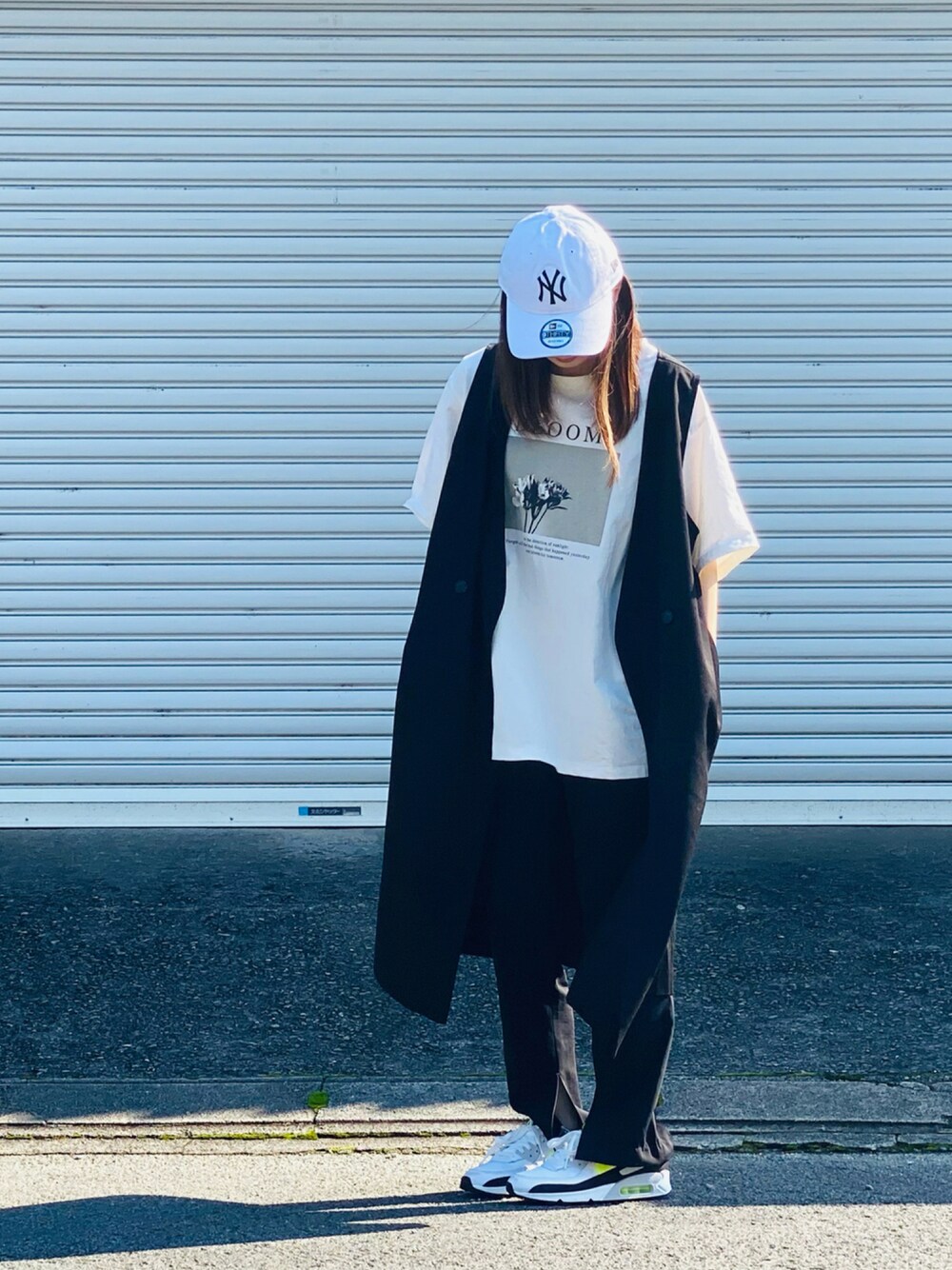 シンプルコーデ 今年トレンドの ロングジレでこなれ感が出てオシャレ! ボトムスが7割ブラックしか持ってないけど好きだから集めてしまうのって仕方ない❤️