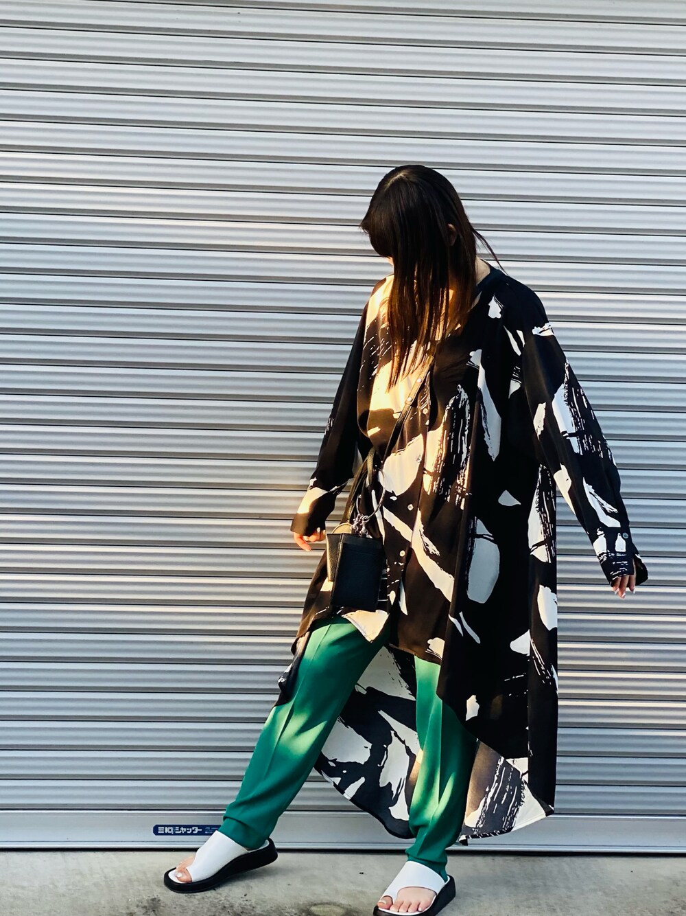 長袖が朝夜必要やけど 日中は暑いので、サンダルで。 季節の変わり目ファッション。 緑のパンツが地元にあるlogicって言う セレクトショップで買ったよ! またまた一目惚れです笑