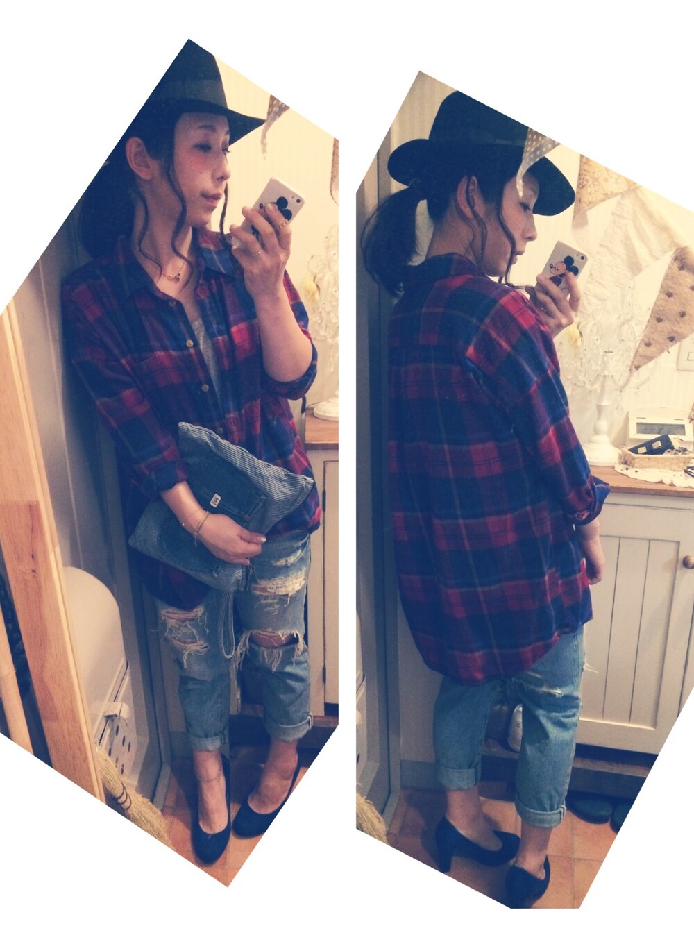 ぼうし#HARE シャツ#ungrid デニム#RODEO CROWNS