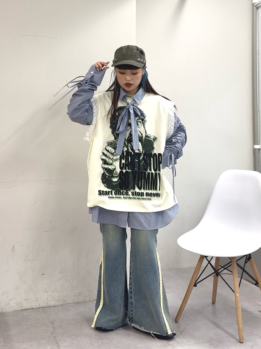 ゆ な ま る。 (CIAOPANIC)のTシャツ/カットソー「袖レースロゴノースリーブビッグTEE」を使ったコーディネート