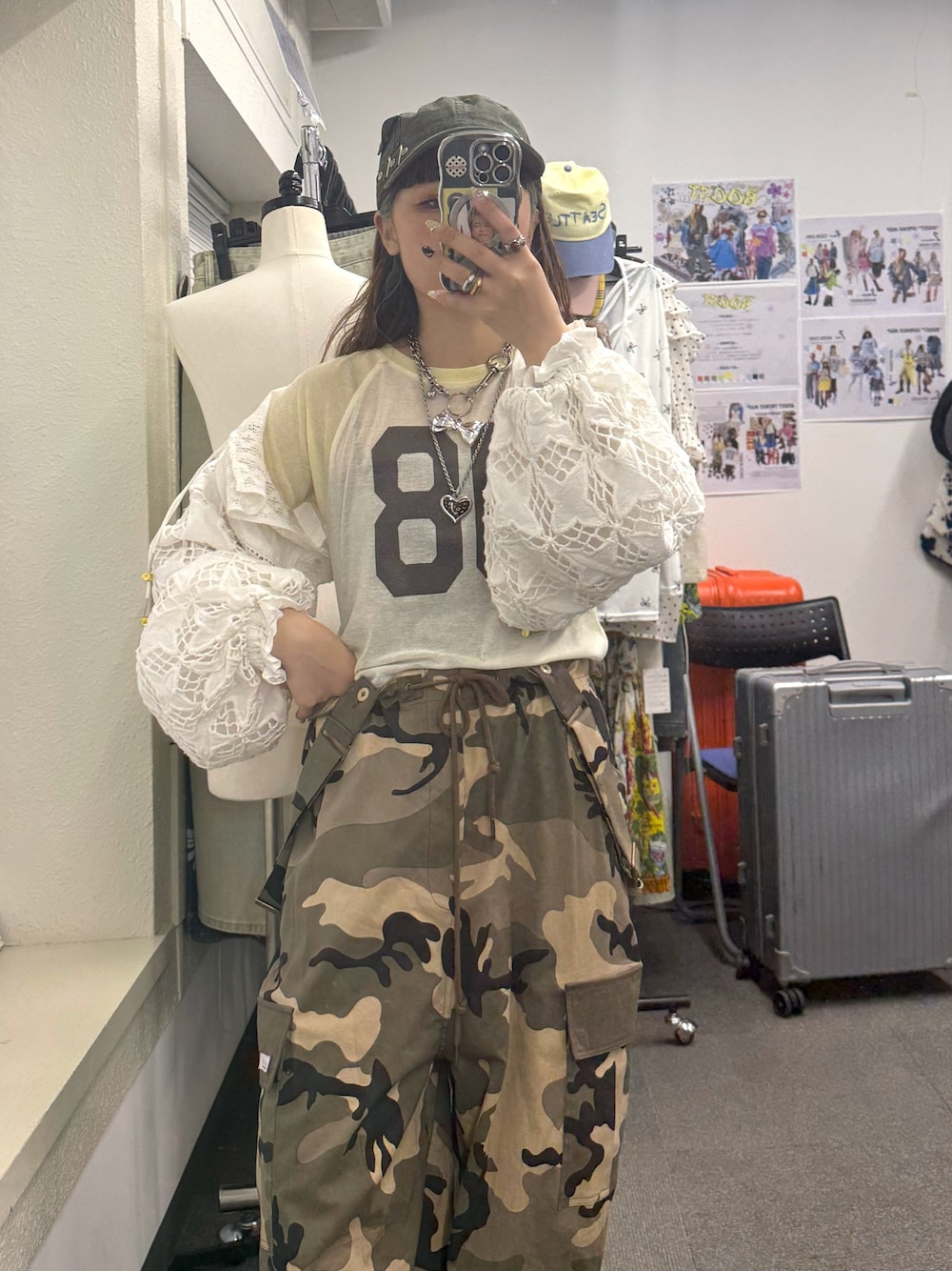 ミリタリー×ガーリーミックスなコーデに○ 今年の春トレンドのイエローを差し色にしたところがポイント🙆♀️
