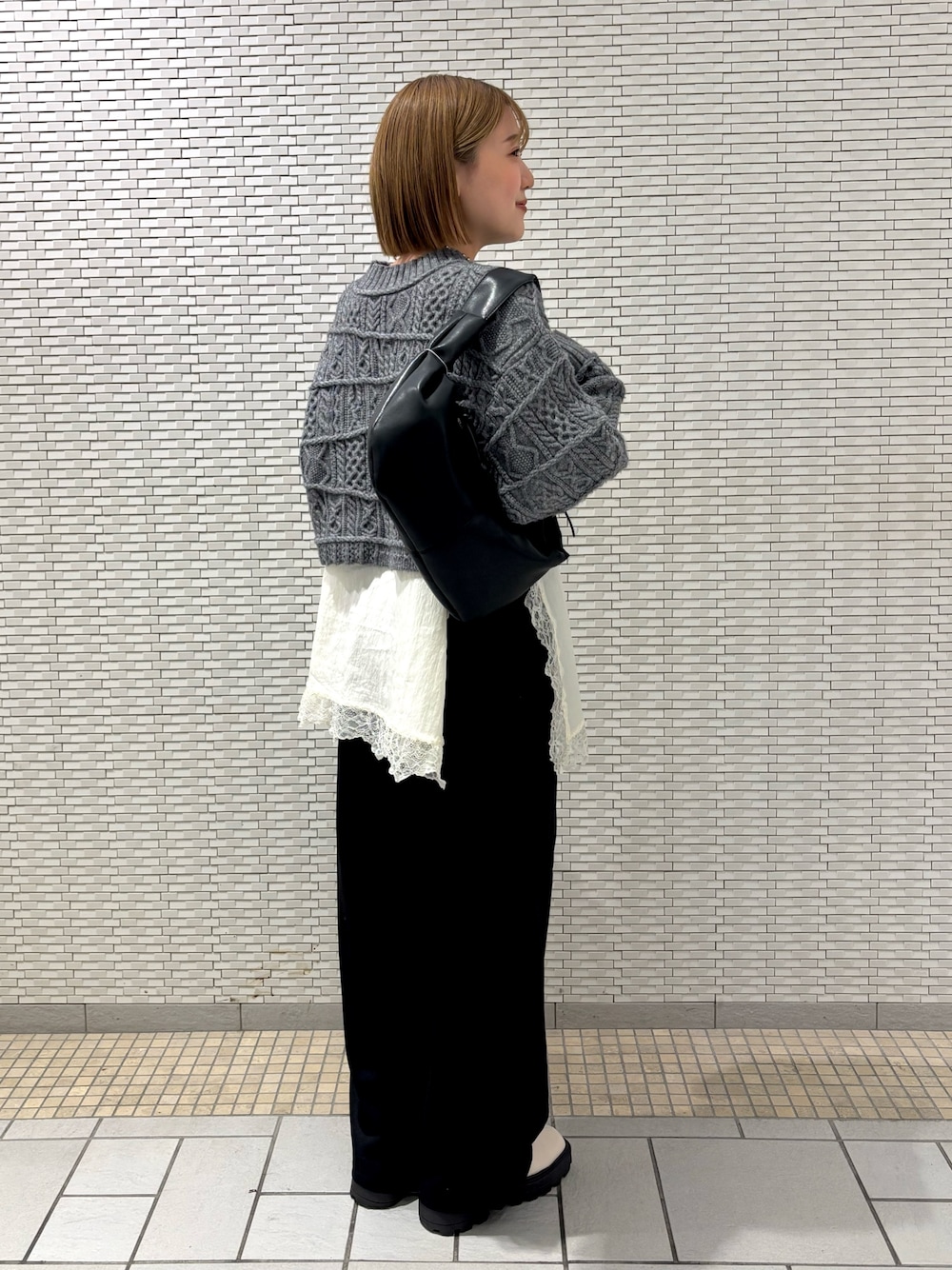 ご覧いただきありがとうございます! KBFソラリアプラザ福岡店のユウリです! 大人気のレースキャミソールにニットでレイヤードして春っぽ冬コーデを組んでみました🥨 是非参考にしていただけると嬉しいです⭐︎