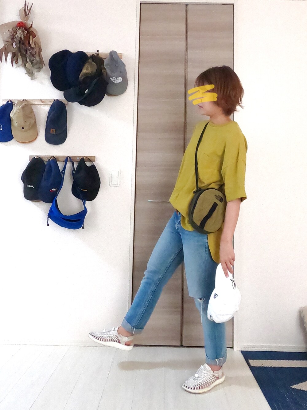 yrcn.のショルダーバッグ「THE NORTH FACE CDR NY SLD POUCH (BEIGE/BLACK)」を使ったコーディネート
