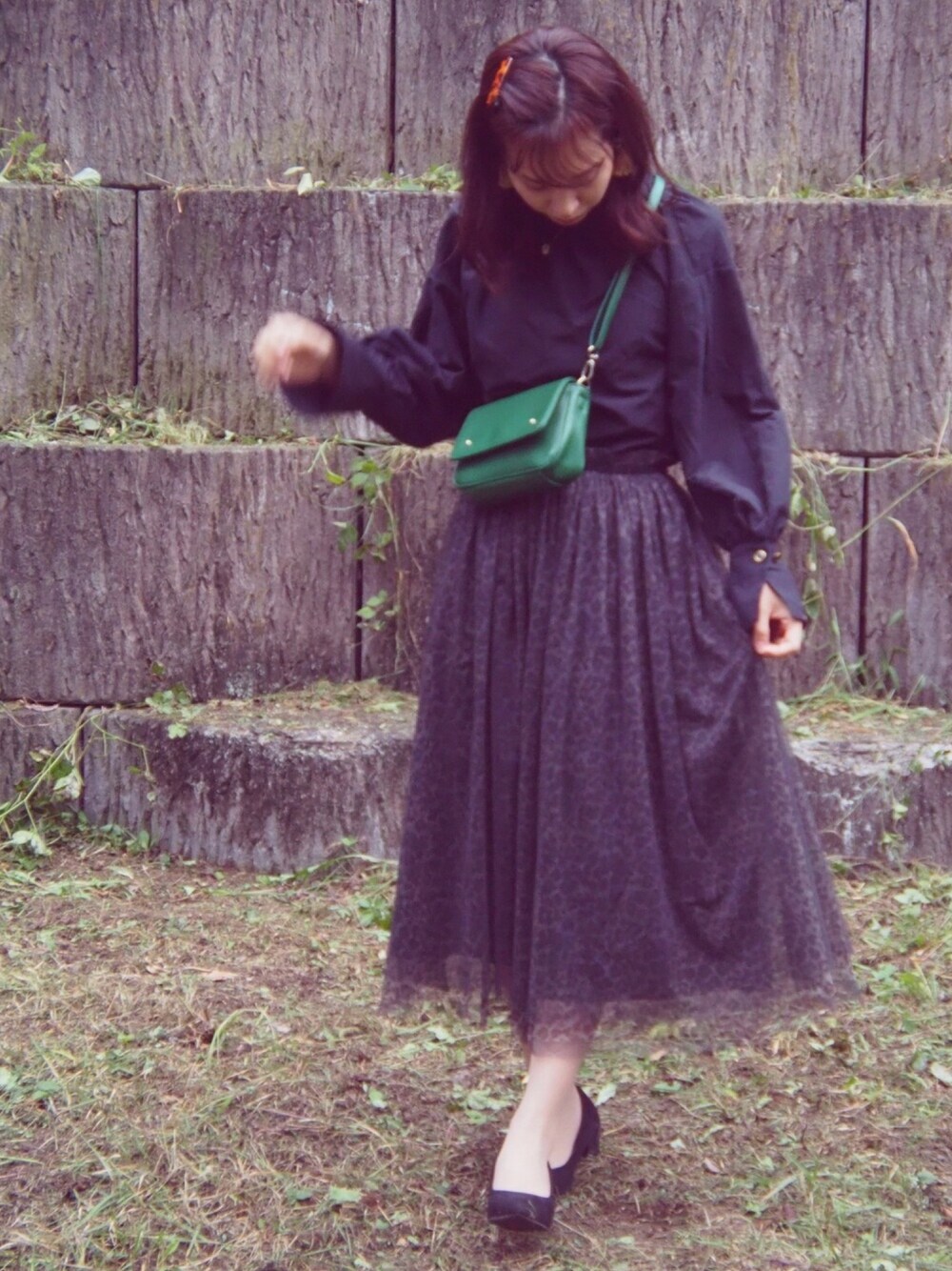 全て今年の物ではないです⚠ 特にトップスの袖が可愛くてポイント! ブラックコーデには アクセントにカラーバッグを。