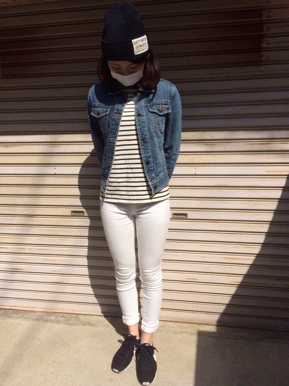春を意識して上下白に デニムジャケットを合わせてみました🌸